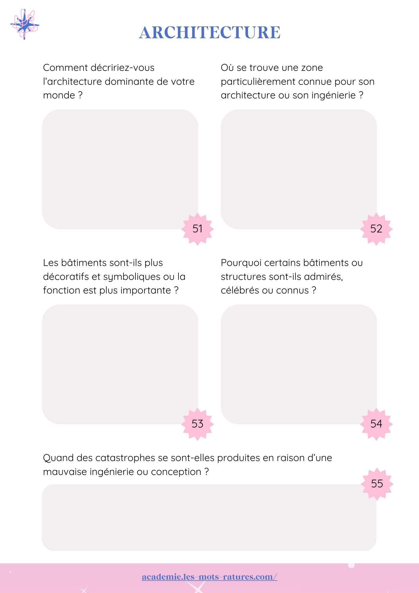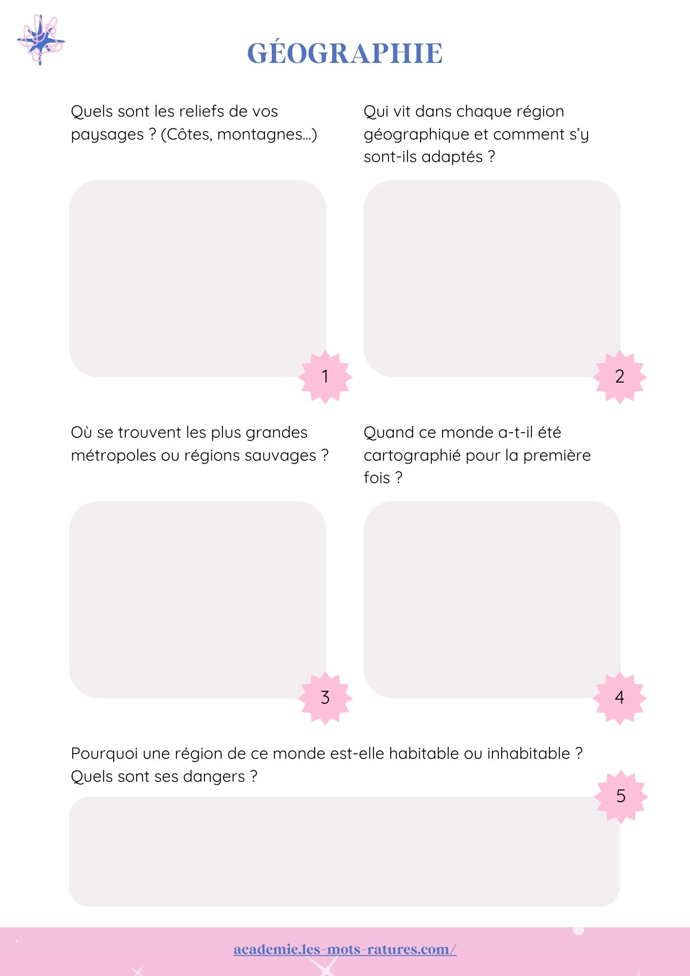 Oui, tout ça et plus encore : croyances, architecture, conflits, nourriture, langues, technologie… Le workbook te pousse à penser ton monde dans toute sa richesse.