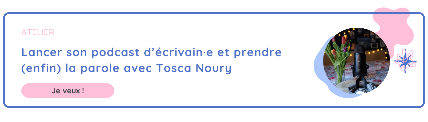 PS : Vous voulez lancer votre propre podcast en tant qu'écrivain ? Visionner notre atelier : Lancer son podcast d’écrivain·e et prendre (enfin) la parole avec Tosca Noury