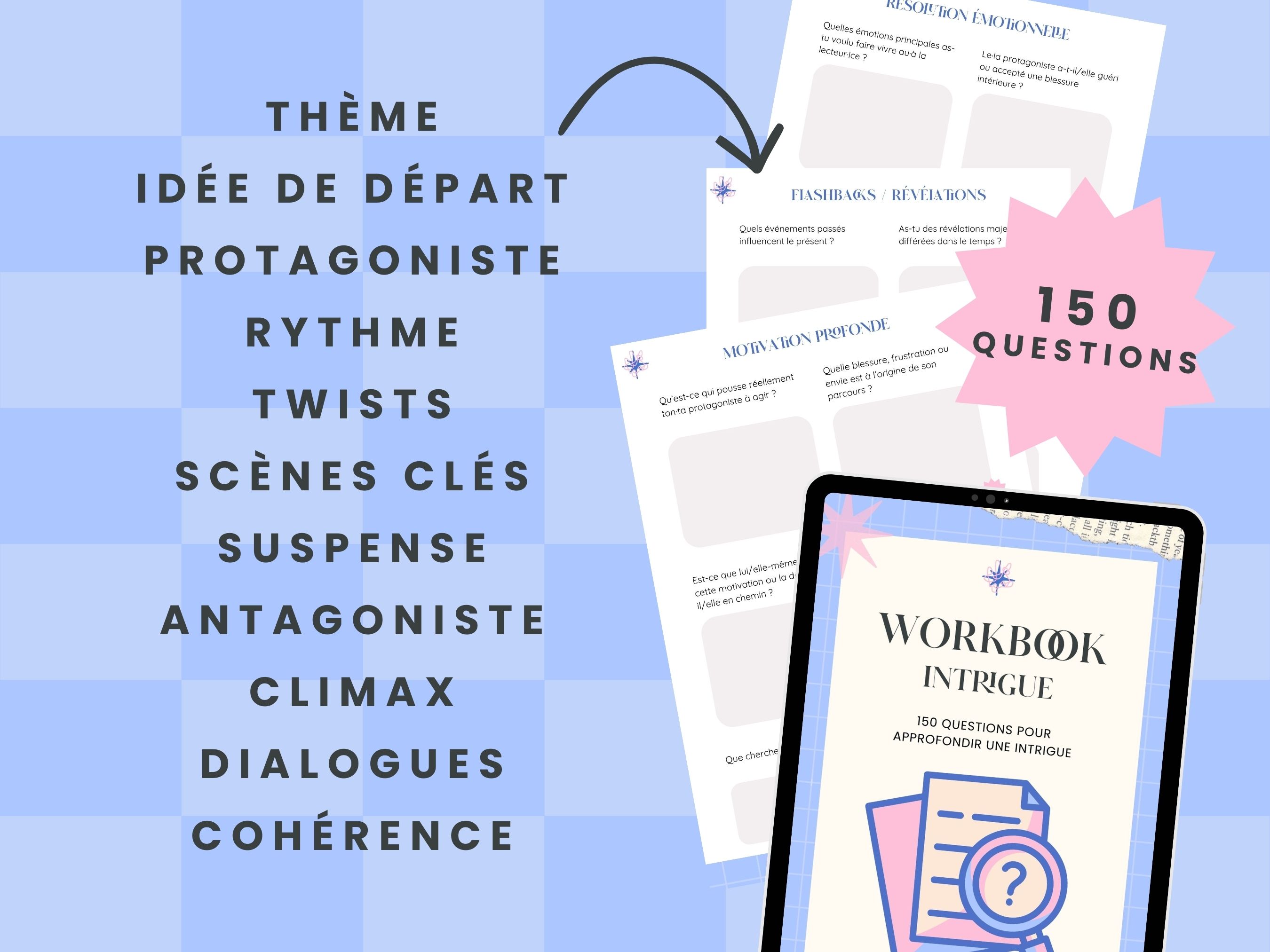 Construire une intrigue qui tient la route, c’est tout un art. Comment maintenir le suspense ? Où placer les révélations ? Comment t’assurer que ton histoire avance sans incohérences ? Dans ce workbook, je te propose 150 questions pour structurer ton intrigue de A à Z, du déclencheur jusqu’au dénouement final.