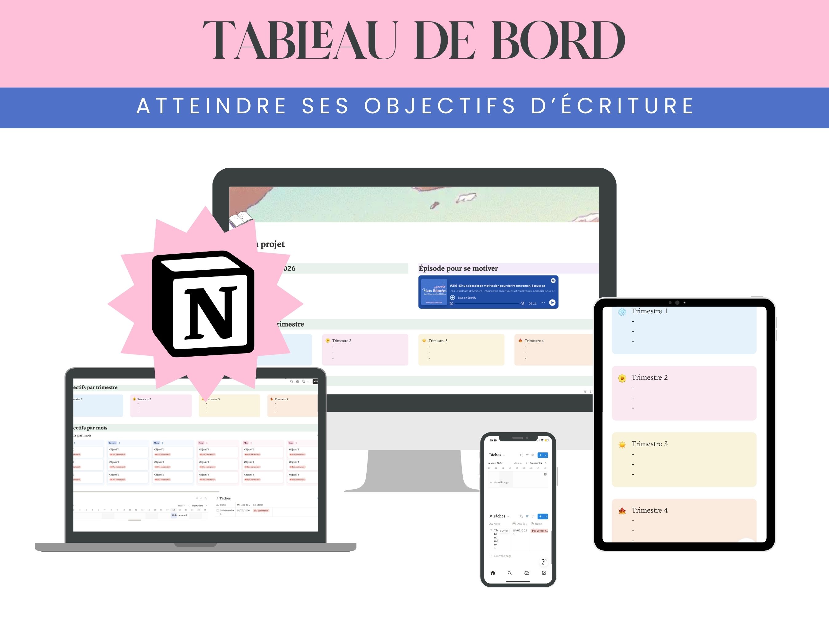 Organise, planifie et suis tes Ce tableau de bord Notion est conçu spécialement pour les auteur·rices : objectifs mensuels, progression de projet et deadlines. Idéal pour transformer ton chaos créatif en plan d’action clair… sans perdre ta créativité en route.